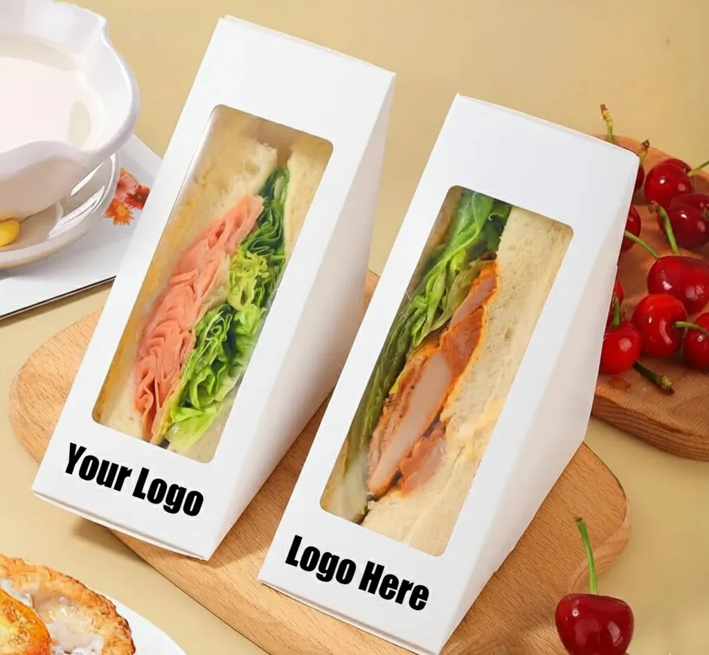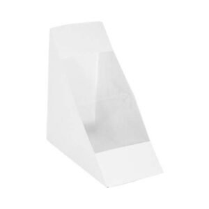 These triangular paper takeout boxes offer a convenient way to package small-sized sliced sandwiches. Perfect for any establishment or food truck that gets a lot of takeout sandwich orders, these to go containers are durable, unique, and sleek. nature-friendly, versatile, and stylish.